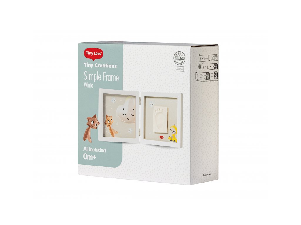 Dřevěný rámeček Tiny Creations Simple Frame nabízí dva oddělené prostory pro fotografii a otisk ručičky a nožičky Vašeho miminka. Vyrobte si krásnou dekoraci, která vám zároveň pomůže uchovat vzpomínky na krásné období po narození vašeho dítěte.